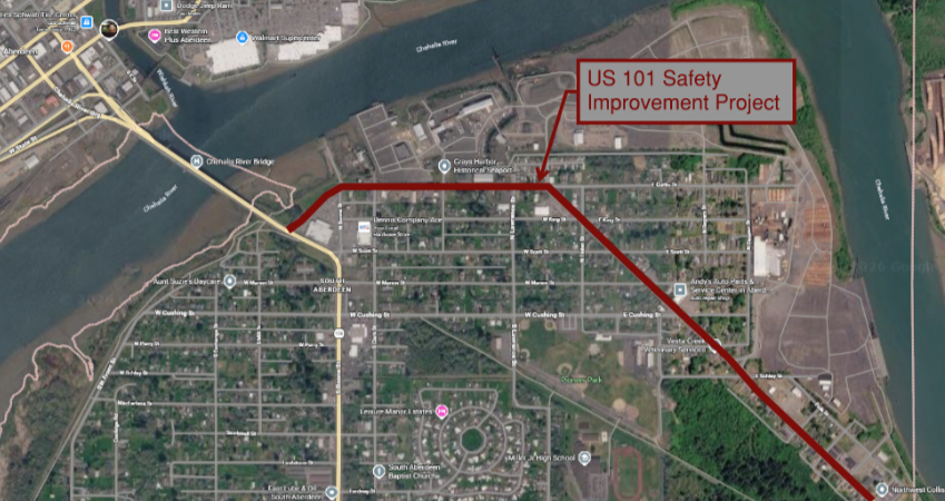 The City of Aberdeen has announced that construction will begin in April on a major improvement project along the US 101 corridor, extending from the Chehalis River Bridge to the Cosmopolis city limits. The project was awarded in February to Reed Trucking & Excavating, Inc.
