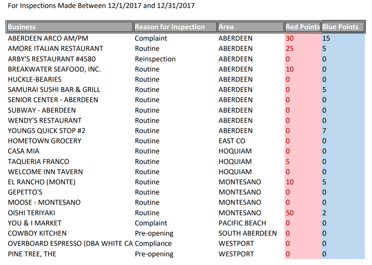 Grays Harbor Scanner did reach out to find out why the restaurant listed below with 50 red points Oishi Teriyaki had 50 red points, and this is what we were told.