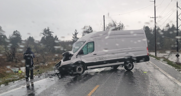 The crash occurred at approximately 12:41 p.m. on December 22, 2025, and involved two vehicles—identified as a white van and a 2009 Ford Expedition—traveling in opposite directions on SR-105.